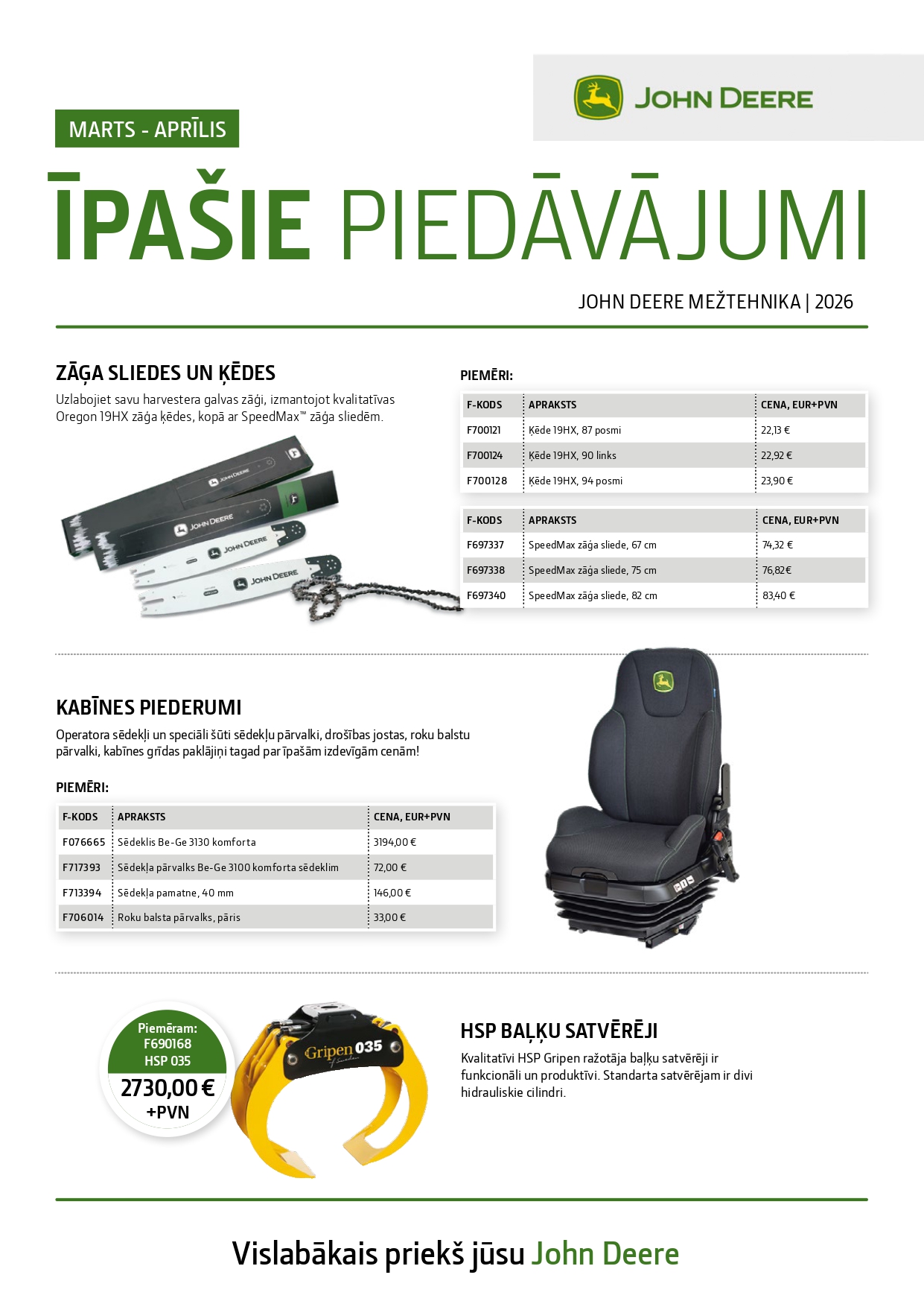John Deere īpašais piedāvājums marts-aprīlis | 2026